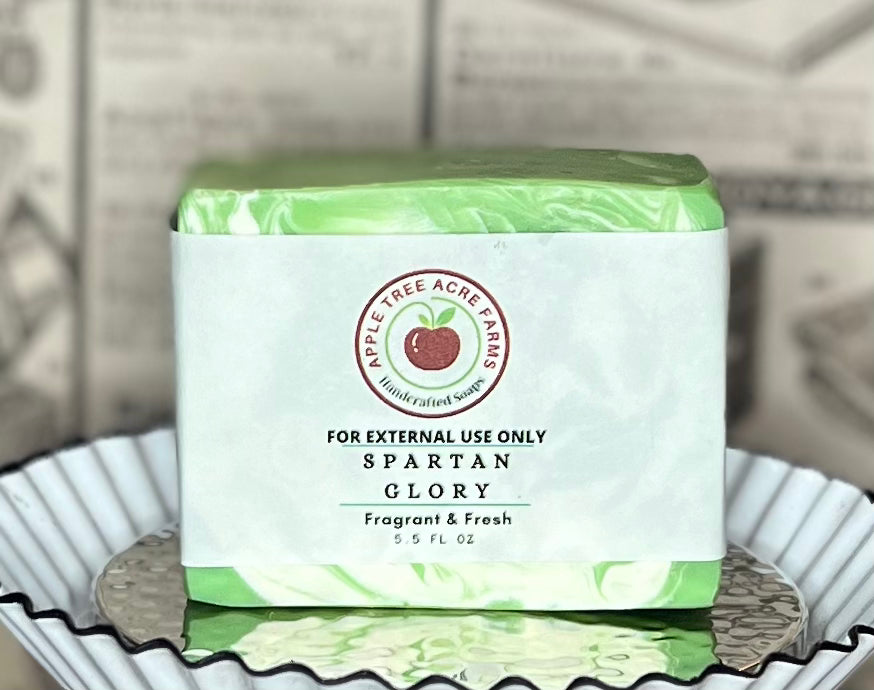 Unleash the spirit of Spartan Glory with our specially crafted soap from Apple Tree Acre Farms. Immerse yourself in the essence of leather and cedar, reminiscent of the distinguished aroma of East Lansing, Michigan. Let the notes of pine and campfire evoke memories of the iconic Red Cedar River. Made with the usual blend of premium oils and butters, this soap is not just a cleansing experience but a tribute to your alma mater. Elevate your routine and relive the glory of your Spartan days with each use.